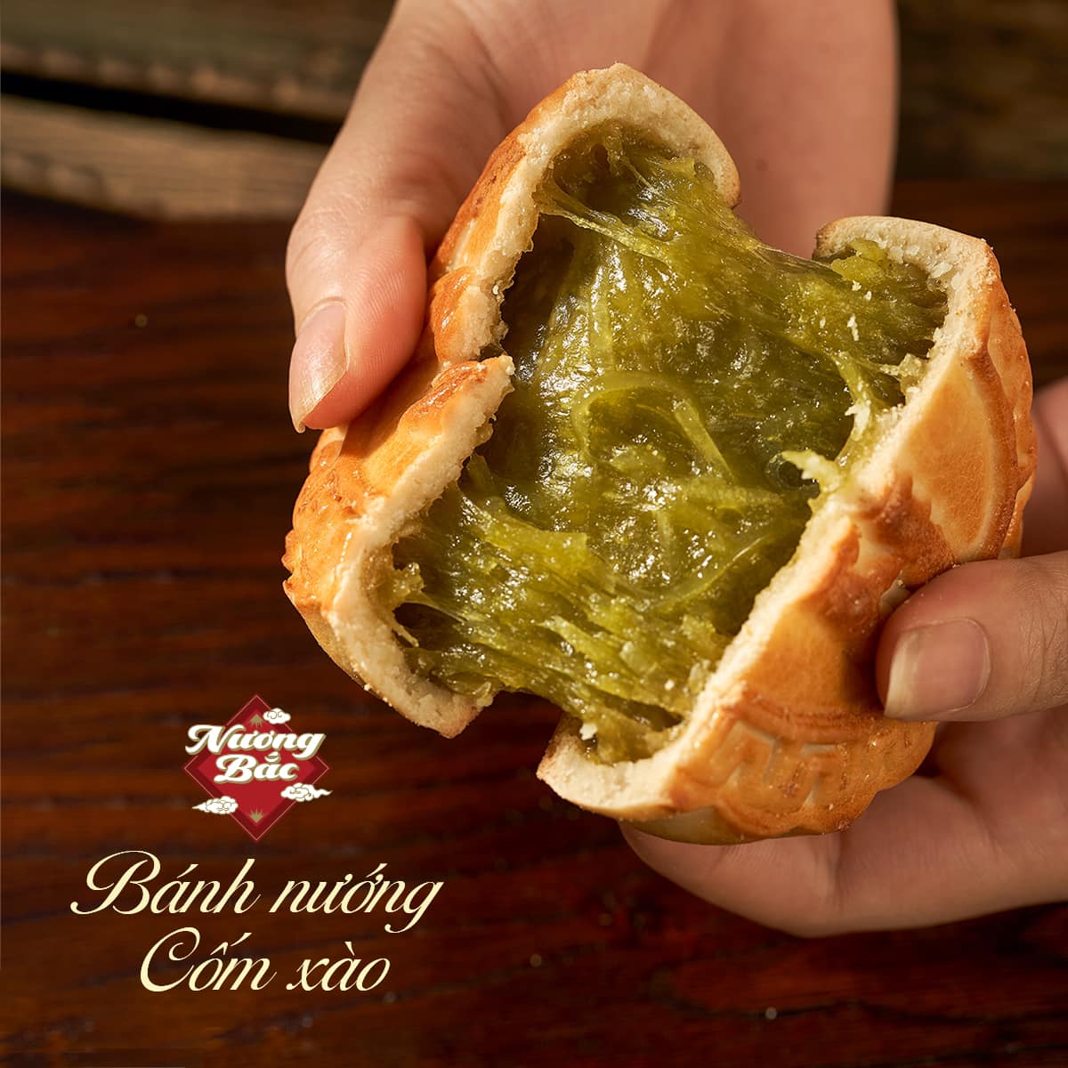 Bánh Nướng Cốm Xào Nương Bắc được yêu thích nhờ lớp vỏ bánh mỏng, mềm thơm, không quá ngọt; nhân cốm xào ngọt thanh, béo nhẹ, dẻo mịn và đặc biệt không bị khô cứng như nhiều loại bánh nướng khác. Hương cốm xanh thoang thoảng hòa quyện cùng vị dừa bùi bùi, tạo nên cảm giác thanh mát, tròn đầy nơi đầu lưỡi.