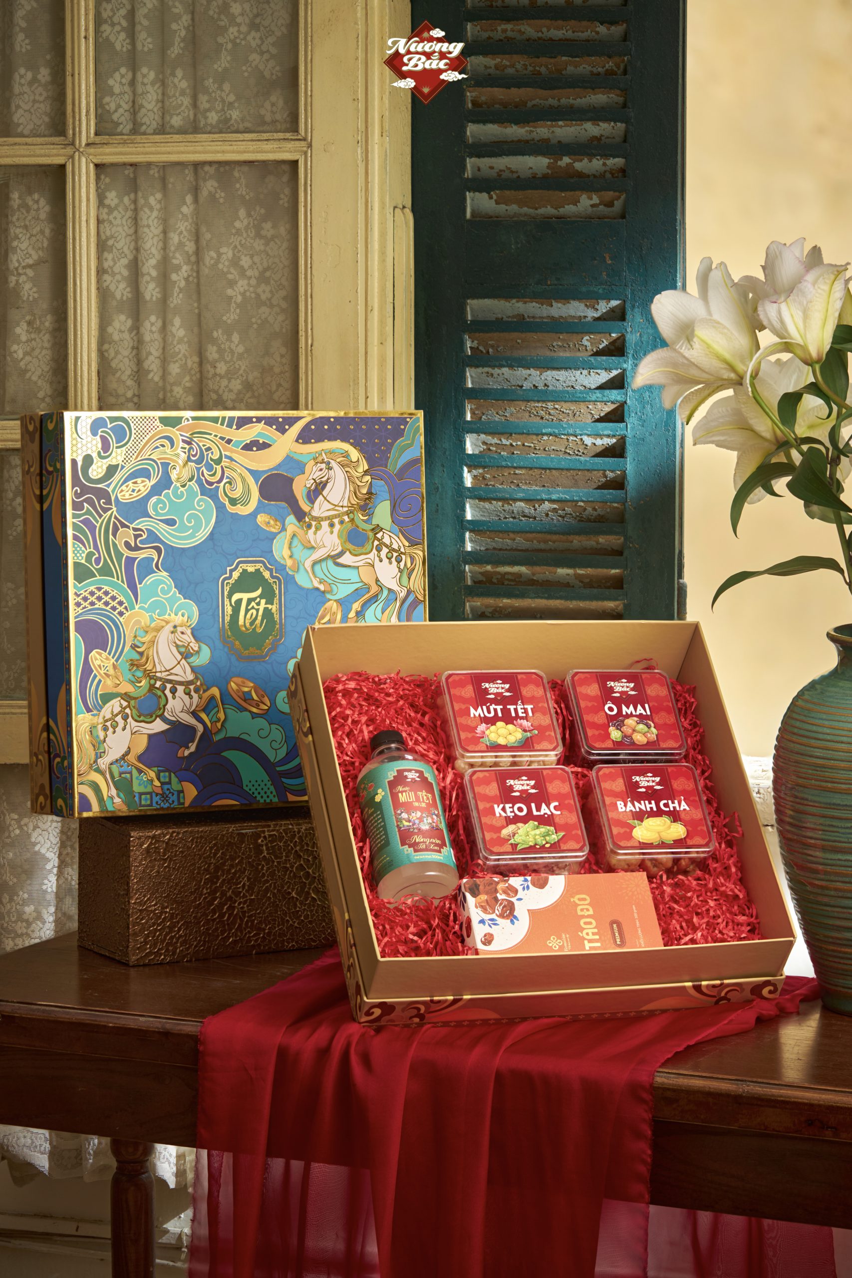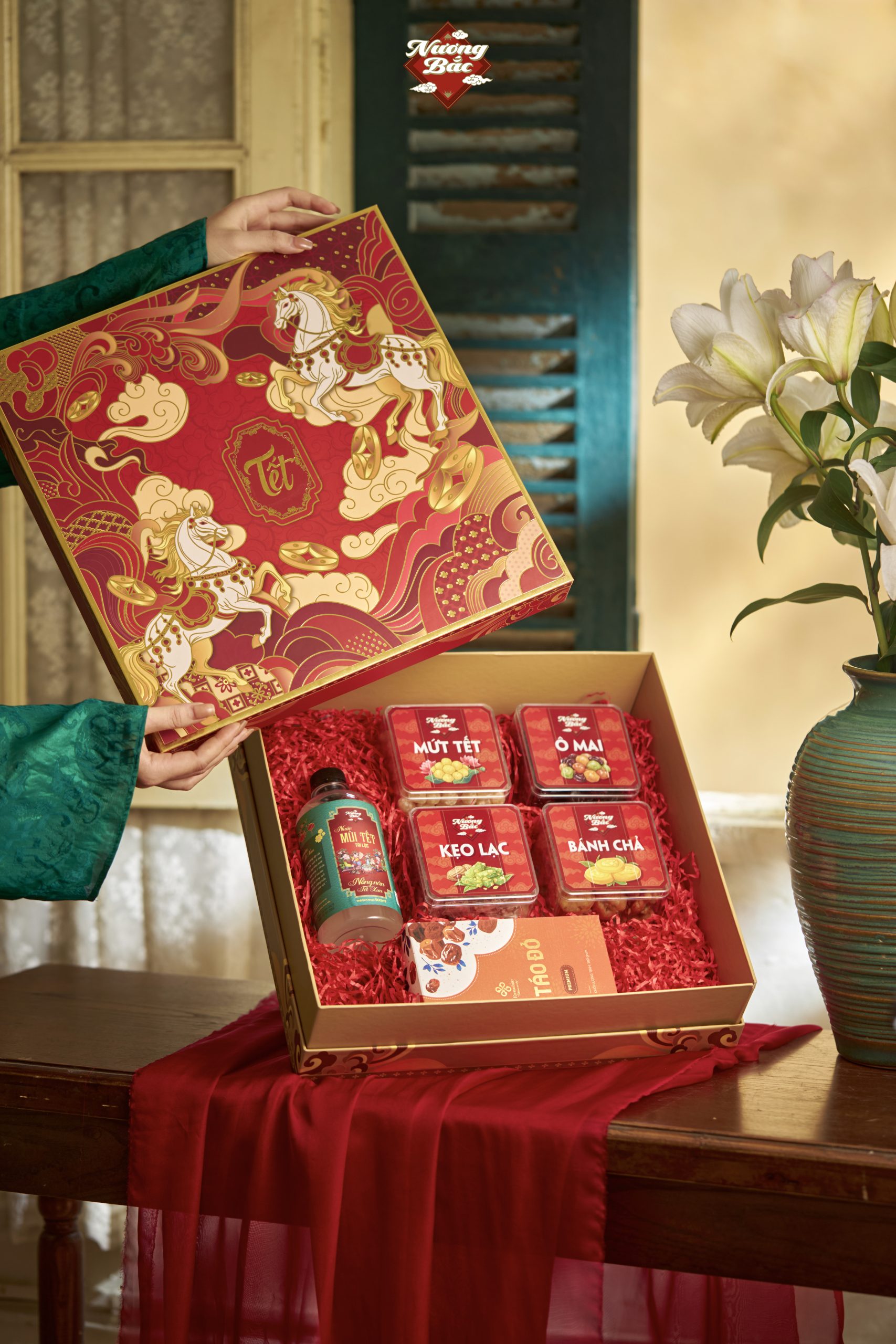 Mã Đáo Thành Công là hộp quà mang theo tinh thần khởi đầu hanh thông, hành trình suôn sẻ và vững vàng tiến bước. Bên trong là những thức quà truyền thống như bánh chả, ô mai, mứt sen, kẹo lạc matcha – mộc mạc mà đủ đầy hương vị Tết. Đi cùng là trà táo đỏ cao cấp Econashine và nước tắm mùi già thanh lọc như lời chúc an lành từ thể chất đến tinh thần. Một món quà sang trọng, chỉn chu, gửi gắm lời chúc năm mới mạnh mẽ, bền bỉ, gặt hái thành công.